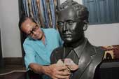 | Milan Kumar Das with a bust of his uncle Jatindranath Das. Picture by Sanjoy Chattopadhyaya |