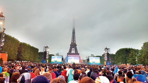 Champ de Mars, a long stretch of green between the Eiffel Towel and Ecole Militaire, had been barricaded and turned into a fan zone with a giant screen and 12-14 smaller screens on the sides. They even took away my large umbrella at the entrance.