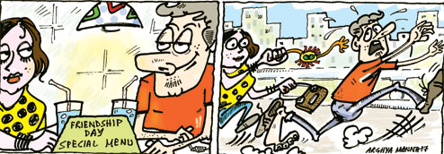 These days, when all Days look the same, when all days are Days to start with, Friendship Day may well be a surrogate of Valentine’s. I know it was; I happened to hear Class X students, a mixed-gender group, talking. Their problem was this: Friendship Day is different from Valentine’s Day, but how? On Friendship Day, too, they went out and did the same things, in a group, as some of the conservative parents – sad creatures, them! – still do not officially allow their school-going progeny to “date”. However, Friendship Day this year was followed by a fear that would not trail Valentine’s day.
