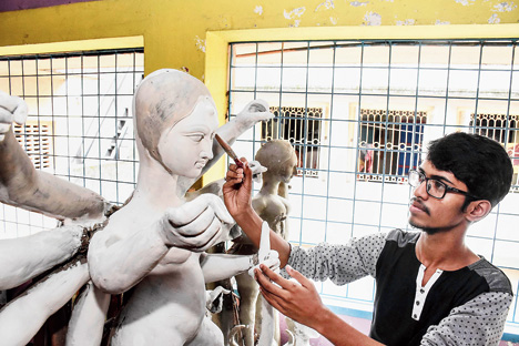 Nagerbazar: For friends Subhrajyoti Das and Tanay Nag, the run-up to Puja begins with shopping - not for the latest trends in menswear, but clay for making the Durga idols for the pujas at their north Calcutta homes.
