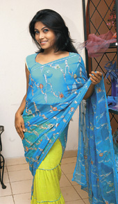 “I have joined hands with my aunt Lakshmi More who owns a four-year-old garment export firm, Cocoon Exim (P) Limited. We have been exporting our designs to many countries after testing waters in Bangalore. The new label VILAE is our joint venture, exclusively for the Calcutta market,” said Stuti.