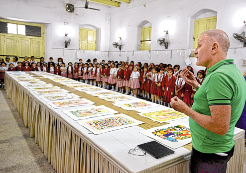 Neline and Ujjal Mondal of the Chandernagore-based Human and Heritage Charitable Trust and staff of the hotel where Van Cleef stays whenever he is in town helped him mount the exhibition. The children of two schools — St. Antony’s School and St. Josephs Convent School —were invited, and the little ones started trooping in at 1pm.
