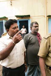 | FOXING THE COPS: Landlord Kashinath Jaiswal and milkman Amarnath Prasad being produced in court after their arrest on February 7. A Telegraph picture |