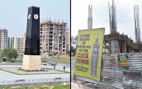 Work is on full swing and the tower is coming up at Lake Town crossing. “The tower will be 30m high and will have clocks on all four sides,” said MLA Sujit Bose, who is footing the Rs 1.36 crore bill to built it. “Their faces and digits will be similar to the Big Ben’s. We will also beautify the base with ornamental plants and hedges.”