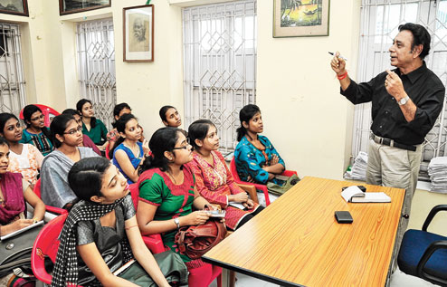 | Parimal Chandra Das, the joint convener of Udayan Care’s Bengal chapter, holds a workshop on “aptitude and attitude” for a batch of Shalinis. Picture by Arnab Mondal |