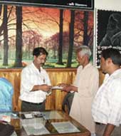 | Roy (centre) hands over the application to Lahiri. Picture by Abhijit Chakrabarty |