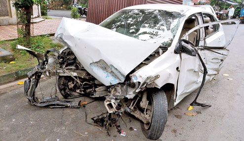 While Ahana was flung out of the car under the impact of the crash, the engine got separated from the chassis and skidded for about 50m.