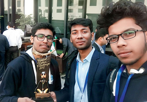 Sayak Dhar, Saswata Das, Debanjit Sarkar, all third and second year computer science (B Tech) students at the university, had taken part in the contest conducted by a cyber security awareness group, Cyber Peace Foundation.