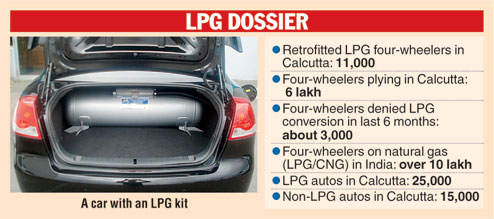 About 11,000 four-wheelers are plying on LPG in greater Calcutta, less than 2 per cent of the total number. The demand for LPG conversion has shot up in recent times because of the steep increase in petrol price. However, the only way Calcuttans can switch to the relatively cheap green fuel is buying a car fitted with LPG kit in the factory. There are 5,000 such four-wheelers in the city.