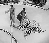 Who doesn’t remember the delightful king of Shundi in Goopy Gyne Bagha Byne? But did you notice the animal motifs used for Shundi or how they were different from those of Halla? For the benevolent king of Shundi, Ray used loveable animals like the butterfly (in picture first from top), the peacock and deer, while the war-hungry king of Halla was represented by tiger and snake insignia (second from top). The court of the king of Amlaki, who banished Goopy from his village, had the motif of an owl on the floor (third from top). Deb said these represented Ray’s portrayal of the good, the bad and the ugly.