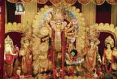 | | Durga and family at the Bally Ganga Apartments in Howrah. Community bhog and cultural programmes saw the women and children taking centre stage during the four days of festivity | |  | | The pratima at the Alaka Cooperative Housing Society Puja on SP Mukherjee Road. Community bhog and a host of cultural programmes marked the Puja days here | |