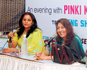 | Pinky Kapoor (left) fields questions from the audience at The Good Life Talk Show in Salt Lake, as compere Rita Bhimani looks on. Picture by Amit Datta |