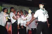 Using the familiar reality show format, Souptic presented a mock contest in which the children — all bearing number tags (not names) — were to sing, play the drum, mime a cricket match or do whatever they were good at. On stage was a set of judges who seemed hard to please. They harshly criticised each contestant and finally walked out in a huff saying that judging shows by such children were below their dignity. When a contestant, a young girl, burst out crying, several people in the audience spoke out against the judges, not realising that this was exactly the intention of the play. The compere of the show then appealed to the audience to show leniency in judging children as they were special.