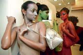 | City models show off bags at Blue & Blues on Camac Street. Picture by Pabitra Das |