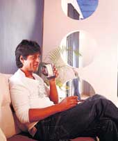 | Shah Rukh Khan relaxing in his chalet during a break from KBC shooting |
