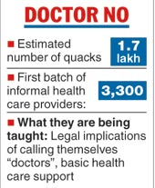 According to an official estimate, 1.7 lakh quacks are active across the state. The first batch of 3,300 candidates from among them will complete their six-month training later this month and become "informal health care providers".