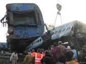 | A file picture of the derailed coaches of the train |