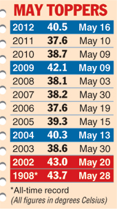 The hottest day of the year so far was also the second hottest May day of the decade after a 42.1-degree scorcher on May 9, 2009. Only thrice in the past 10 years have May temperatures hit 40-plus in the city.
