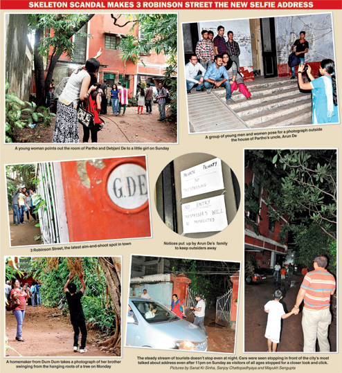 A homemaker from Dum Dum Cantonment booked a car and came over to the Robinson Street house with her brother on Monday morning. She stayed on the premises for a good 30 minutes taking photographs on her cell phone from various angles, calling up her husband and even taking snaps of her brother swinging from the hanging roots of a tree in the driveway.