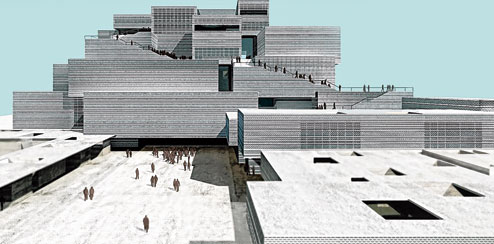 According to the Herzog & de Meuron website, “the concept envisions a collection of simple rectilinear volumes of urban and monumental scale, arranged to express the complexity and diversity of the programme. It draws on traditional Indian construction principles of stacking individual elements, producing a coherent and legible whole through the collection and compression of diverse, unique elements. These elements appear as strata in the façade of the volumes and reflect the simplicity with which they will be built. At the east and south entrances to the site, volumes and voids create courtyards, streets, alleyways and market-like experiences which lead the visitor into a central plaza, a place for gathering and orientation. At the west end of the plaza, the museum rises in a vertical stack of volumes asserting a presence within the complex and the greater urban context. Punctuated throughout the complex are a series of public spaces connected by a network of generous staircases carving out the exterior and interior of the building. The assembly of different programmes, scales and qualities throughout the site gives the proposal a city-like quality. The new KMOMA recognises the importance of public space in India and offers visitors many opportunities for discovery and interaction within a diversity of spaces.” The structure will be eco-friendly, taking into account Calcutta’s muggy summers and high levels of humidity. It will use “passive methods” of climate control to protect visitors from the heat and rain. It will be constructed with “unique cast masonry blocks” and “specific volumes are shifted relative to one another to protect facades below from direct exposure to the sun, or to create shaded exterior spaces”. Elegant jali-like screens will provide shade and control the light within. The spaces where visitors are meant to congregate are shaded and enjoy natural cross-ventilation. Considerable thought has been given to the selection of building material. Landscaping “plays an important role in bringing together the diverse building programme, public space and quality of the cultural and natural landscape”. The lush greenery around the peripheries of the building, the trees planted in the pedestrian pathways and the many courtyards will provide shifting vistas. The rise and fall of the water level in a water basin in the central plaza will indicate the change in seasons. Christine Binswanger, partner, Herzog & de Meuron, will oversee the project to be executed by Abin Chaudhuri, executive architect, Abin Design Studio based in Calcutta.