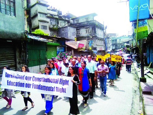 The march, during which teachers sang "We shall overcome", started at Kurseong Tourist Lodge and ended at the local motor stand.