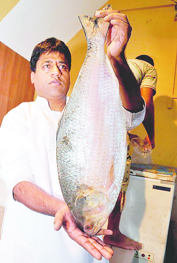 A 4kg hilsa was auctioned at Howrah fish market on Friday on the occasion of Jamai Sashthi. Wholesaler Anwar Maqsood (right with the fish) started the bidding at Rs 2,500 and a fish trader from Dum Dum’s Nagerbazar picked it up for Rs 22,000 — that’s Rs 5,500 a kg.