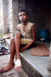 | Arunabha Pal at home after his discharge from hospital. (below, circled): Barun Pal. Telegraph pictures |