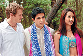 | Jason Lewis in the film My Bollywood Bride and (above) on the sets with co-stars Sanjay Suri and Kashmira Shah. |