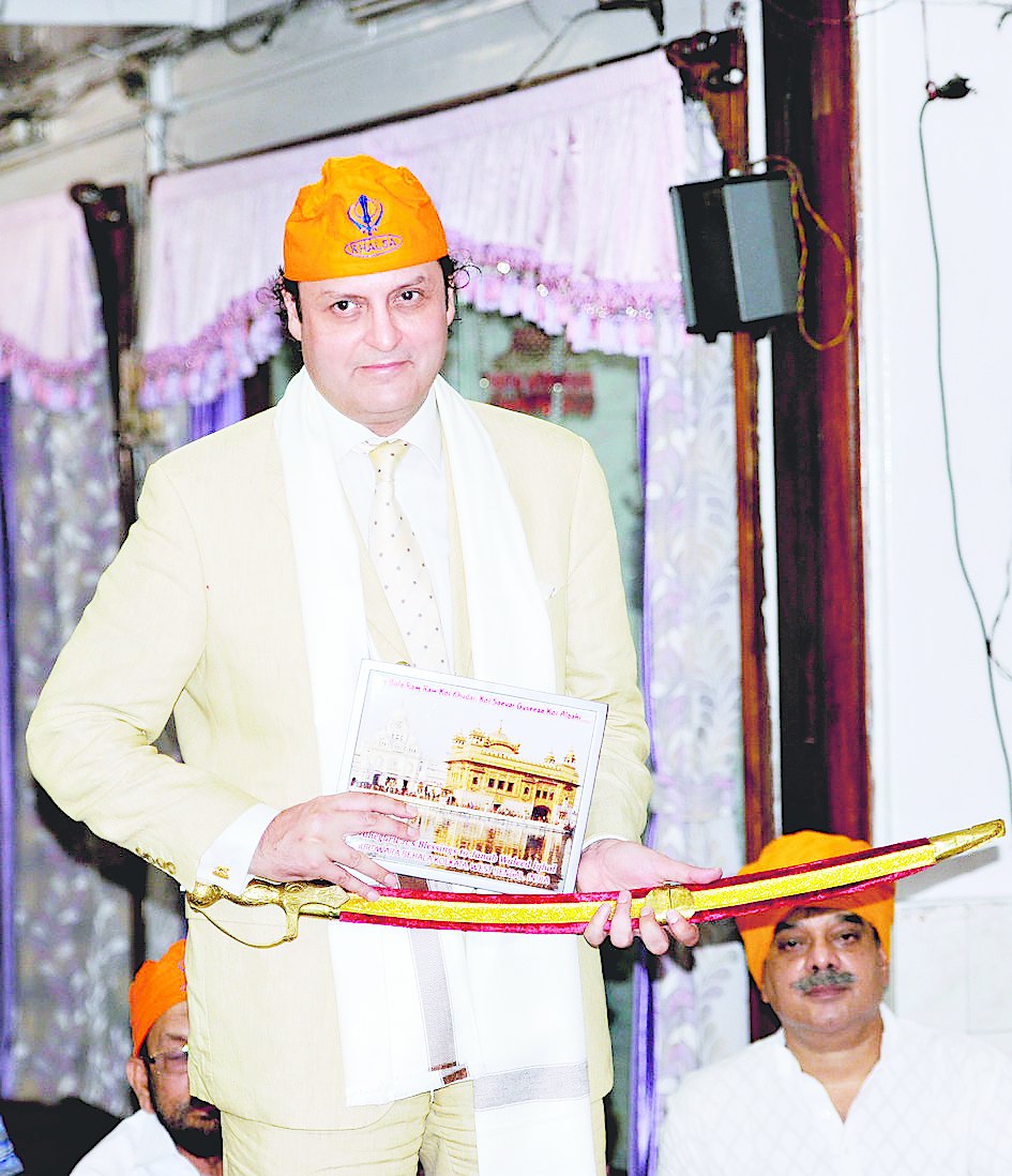 Allama Iqbal's grandson Waleed Iqbal was bestowed with a Siropa (a shawl) and a Siree Sahab (a sword) when he visited Gurdwara Behala, near the Majerhat bridge, on Sunday morning. 'I am overwhelmed with the respect that you have bestowed upon me,' said Waleed, who was accompanied by Trinamul Congress MPs Sultan Ahmed and Nadimul Haque.The grandson of the creator of Saare jahan se achchha, Hindustan hamara, who hails from Lahore, is in Calcutta to participate in the three-day Jashn-e-Iqbal, being held to celebrate the literary works of Iqbal.'The idea of the visit originated when Waleed sahab expressed his desire to visit a gurdwara,' said Satnam Singh Ahluwalia, the general secretary of Gurdwara Behala Prabandhak Committee, who organised the visit along with entrepreneur Imran Zaki.The two MPs and Zaki were also honoured by the gurdwara. Picture by Amit Datta