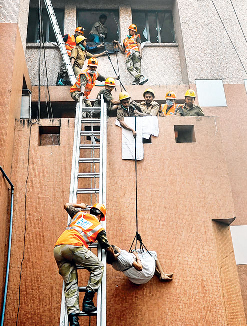 | A patient being rescued during the fire in Annexe I of AMRI Dhakuria on December 9, 2011 |