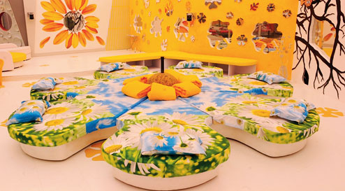 Introductions over, I was quickly made a part of a ‘passing the parcel’ game. Party games at age 30? So what, I told myself and joined in. Dumb charades followed and then Eye Spy — that I bowed gracefully out of, horrified. I did a quick recce of the house. It was huge — 14,300sq ft is what designer Sabu Cyril told me the following morning. A living-cum-dining area with an open kitchen, a garden with a swimming pool, bathrooms outside the house, an activity area next to the garden and two giant bedrooms, one in muted shades of red and grey and the other bright yellow and flashy blue. I chose the latter. The clincher? It had beds in the shape of the petals of a flower!