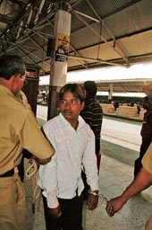 | Manoj Puri being brought to Howrah. Picture by Gopal Senapati |