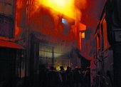 | Flames leap above a Howrah jail gate on Thursday evening. Picture by Gopal Senapati |