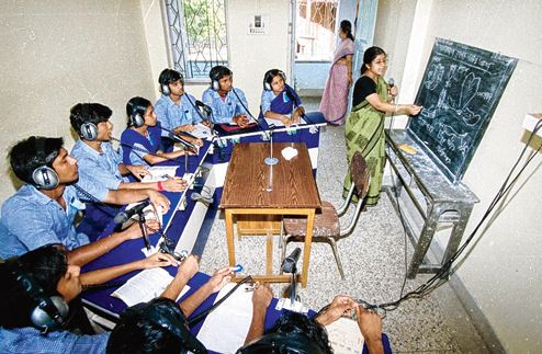 | A class in progress at Helen Keller Bodhir Vidyalaya, Mukundapur, one of the two Madhyamik-level schools in Calcutta for hearing impaired students |