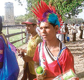 | Mohawk murga wigs being sold outside the Eden Gardens. Picture by Sudeshna Banerjee |