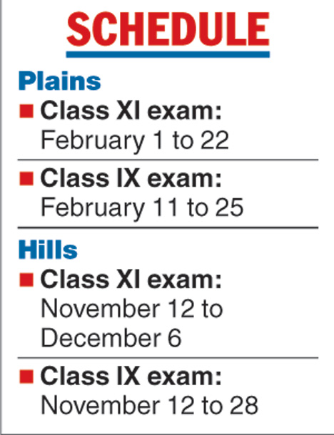 In the Darjeeling hills, the Class XI test is scheduled to start on November 12 and continue till December 6. The Class IX examination is from November 12 to 28.