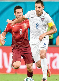 | USA forward Clint Dempsey (right) vies for the ball in a Group G match between the USA and Portugal at the Amazonia Arena in Manaus during the 2014 Fifa World Cup on June 22. (AFP) | I knew about the cricket and I had heard that Calcutta had some soccer teams but I hadn’t expected this! Greg Simkiss, the vice-consul of consular affairs, US consulate general in Calcutta |