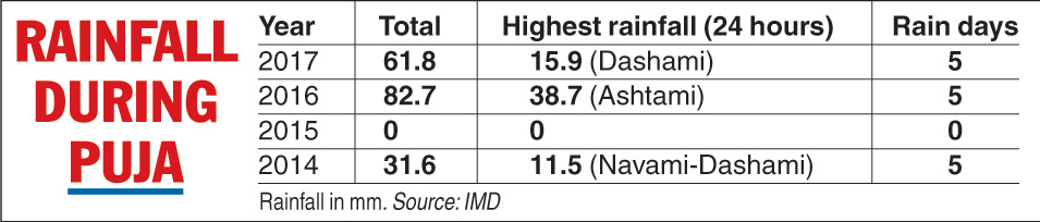 For Calcutta, rain has been the real Mahishasura every Durga Puja in recent years except 2015, which did not bring a drop of rain during the festival.