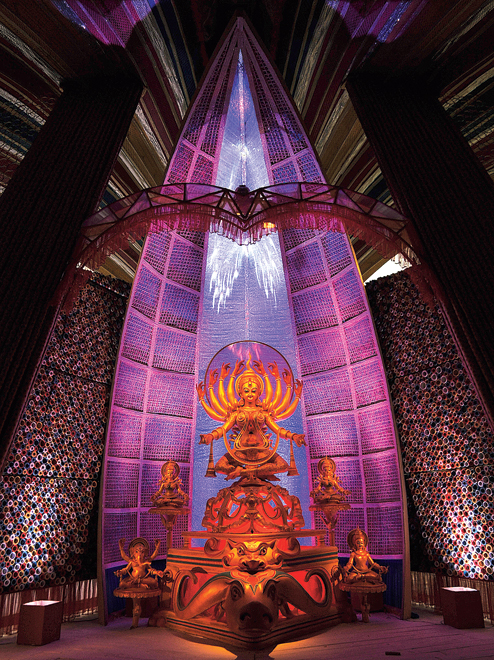 Buddhadev Ghosh, artisan of Ultadanga Daspara Sarbojanin Durgotsab — a “small-budget puja with a big heart” and a True Spirit first-timer — said: “Our theme for the year is Kalighat Pat Sanghashala and we have tried to make everything with eco-friendly materials.”