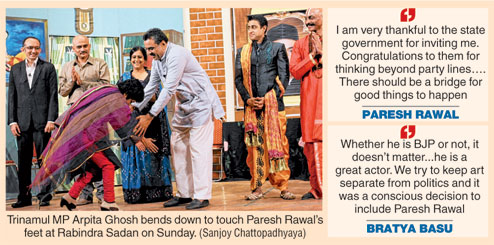 When Arpita Ghosh, the Trinamul MP from Balurghat, honoured Paresh Rawal, the BJP MP from Ahmedabad, she was more the theatre artiste seeking a thespian's blessings than a leader of a ruling party that defines the us-versus-them culture of Bengal politics.