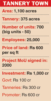 In the 1,100-acre leather complex, 375 acres have been earmarked for tanneries, where around 500 units will be relocated and 130 new units will be set up.