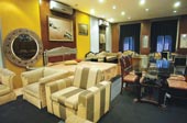 The Team?s USP is customised furniture and treatments and accessories, made by in-house craftsmen and designers. Use of imported fabrics, laminates and ingenuous imagination gives the mall an edge to come up with funky furniture and finishes like leather covered consoles, metallic laminates and reverse carvings. Huge round and oval mirrors fitted in a single wooden frame with in-built lighting around the rim and LED lights inside a bar cabinet are just some of the innovative products on display, which can be replicated and delivered from their retail showrooms on demand. ?These are just the samples, we can make things exactly according to the customer specifications and guidelines,? assures Choudhary.