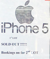 “iPhone 5 1st lot sold out!!!!!!” says a notice put up outside a mobile phone store on Park Street last week. What it does not say is that the second lot has already been booked even though it is yet to arrive.
