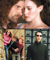 | (Clockwise from top) A still from The Lord of the Rings; Keanu Reeves in The Matrix; a still from Harry Potter and the Prisoner of Azkaban |
