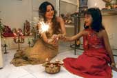 | Actress and dancer Indrani Dutta celebrates Diwali with her daughter on Friday. Picture by Rashbehari Das |