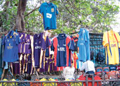 | Jerseys for sale on the pavement at BC Roy Market on the Maidan. (Sudeshna Banerjee) |