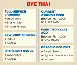 “Our yield is very low, making the route unsustainable for a full-service carrier,” a source in Jet Airways said. “Fares are down from what they were two to three years ago because of low-cost carriers in the fray.”