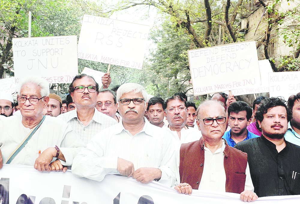 Calcutta, Feb. 15: The Left and the Congress today used a protest march brought out to condemn the police action at Jawaharlal Nehru University as a platform to attack the state government and press for an alliance in Bengal.