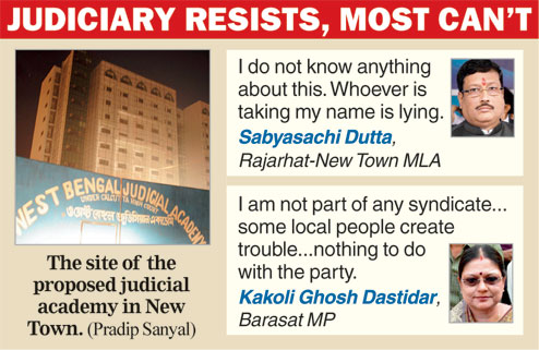 At the construction site of the proposed West Bengal Judicial Academy in New Town, workers were beaten up and materials stolen because the contractors had made the mistake of thinking their association with such a project would guarantee immunity from syndicates.