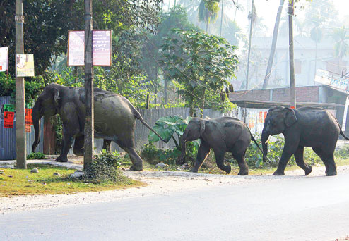 The three animals, a tusker, a female elephant and a calf, were first spotted near Dhupguri station in ward 16 around 5.30am.